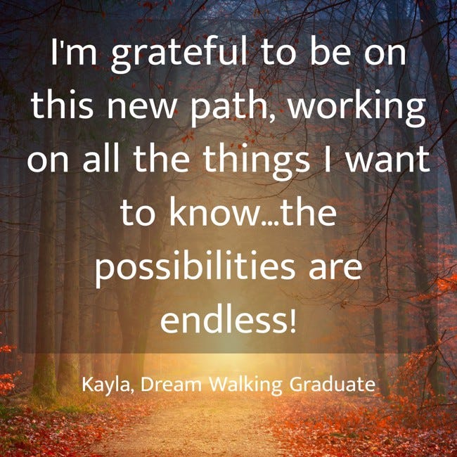 Past Dream Walking students understand how to make dreams happen reliably, how to harness dreams as a Spiritual Gift and tool for development, how to Lucid Dream, how to Astral Travel, and how to reliably connect with loved ones who have passed on, Spirit Guides, and any information, anywhere in the Universe.